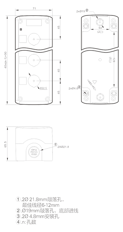 2.开孔直径:Φ22mm(其他孔径可定制)